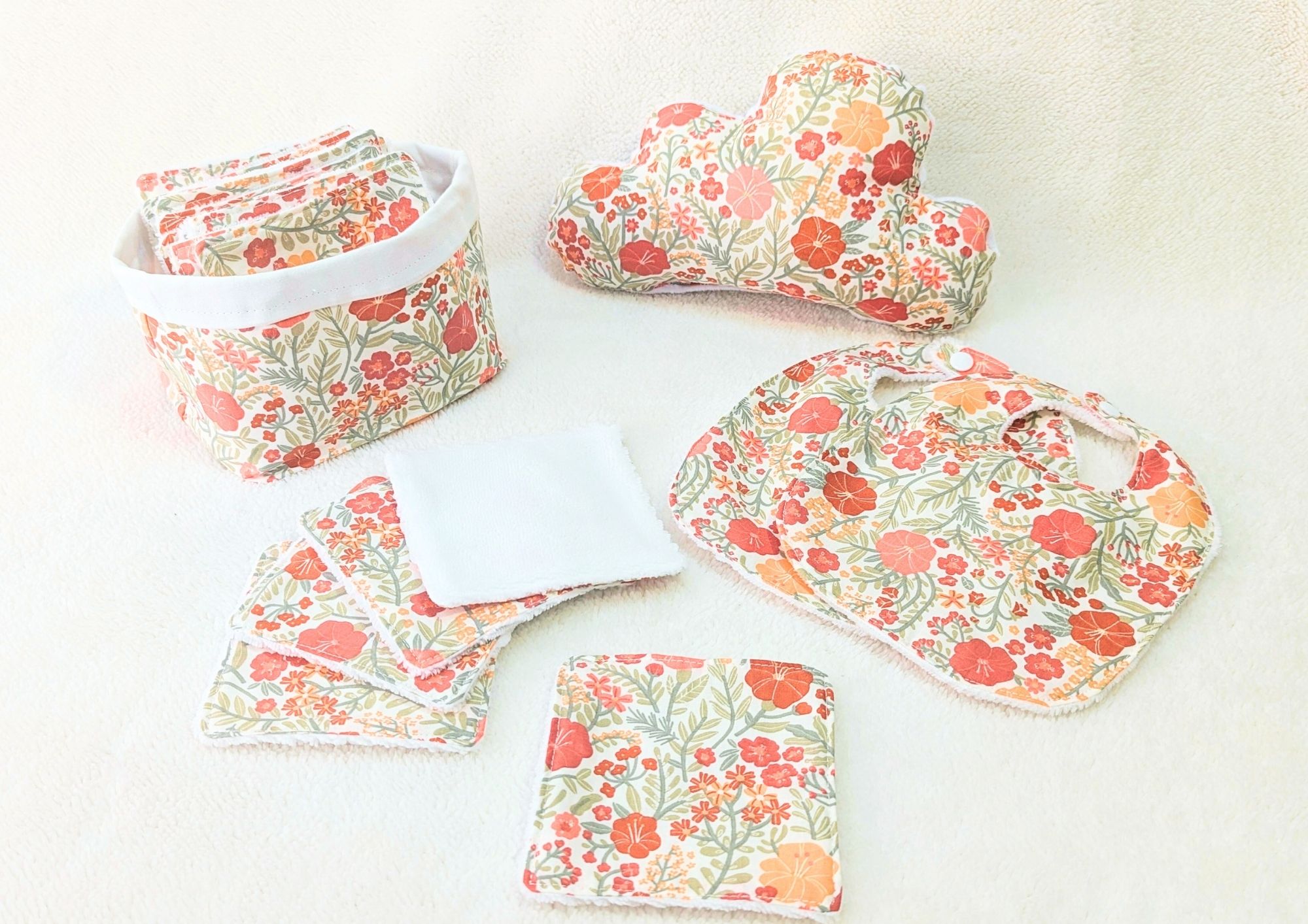 Ce coffret inclut également un panier textile assorti, un atout pratique et esthétique dans la chambre de bébé ou la salle de bain. Ce panier est idéal pour organiser vos lingettes, produits de soin ou accessoires de change, tout en ajoutant une touche décorative. Avec son design élégant, il s’intègre parfaitement à votre espace, alliant fonctionnalité à une esthétique moderne.